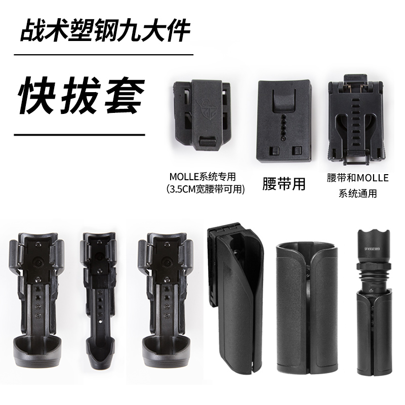 Side-open waist quick pull set flashlight set flashlight set tactical belt eight pieces plastic steel spray set stick set