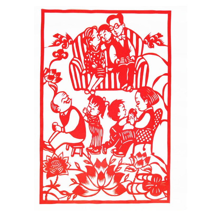Harmonious family family style respect the elderly love young paper cut sticker pure hand-engraved paper double sided red rice paper large size filial piety
