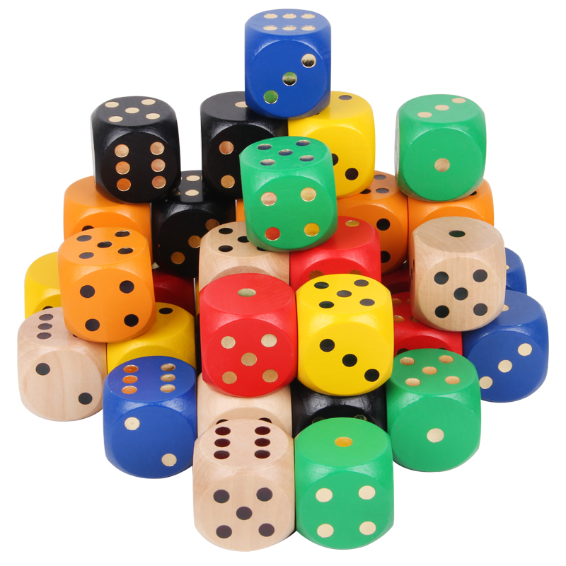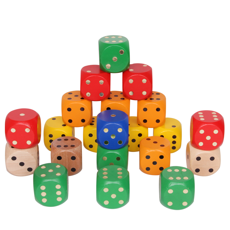 Large six-sided 5CM color solid wood preschool education puzzle points multi-faceted wooden dice teaching aids dice bar KTV game