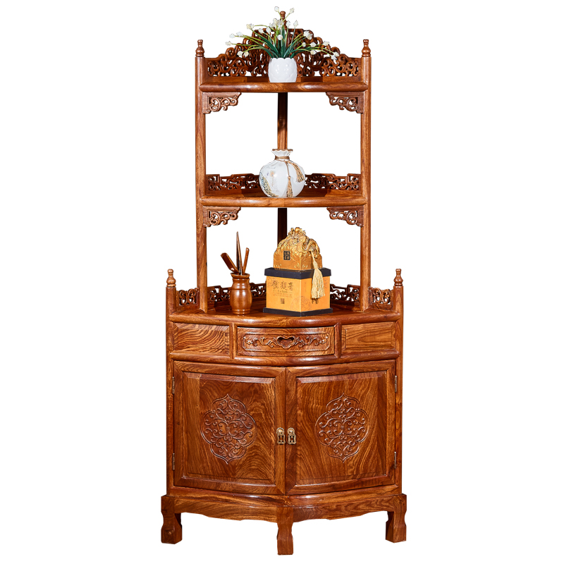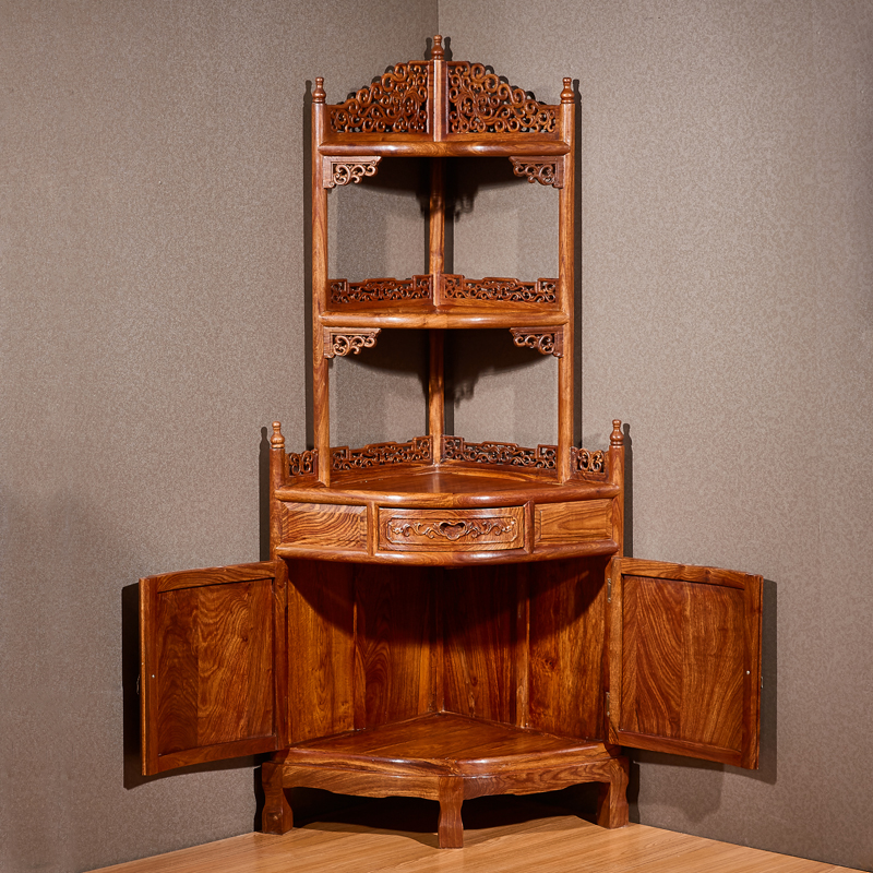 Chinese Red Wood Corner Cabinet Solid Wood Living Room Home Innate Dining Room Wall Corner Cabinet Hedgehog Purple Sandalwood Frame Flowers Pear Wood Triangle Cabinet