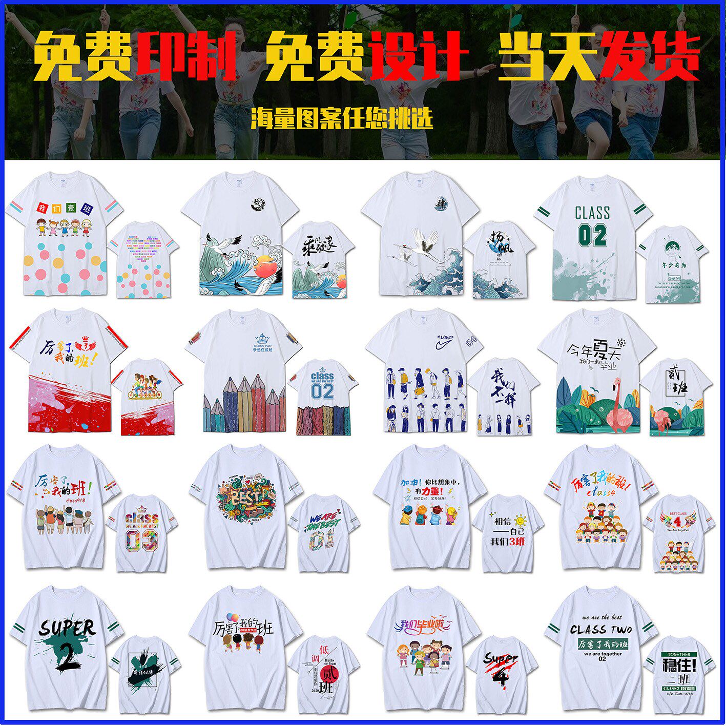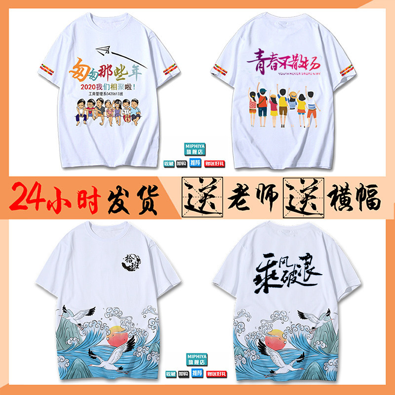 Class clothing custom classmate party t-shirt short-sleeved clothes Graduation clothing cultural shirt polo work clothes printed logo word