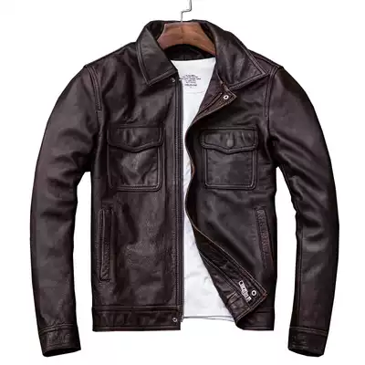 Amikazi first layer cowhide retro stone milled old leather leather clothing men's short slim plus cotton leather jacket