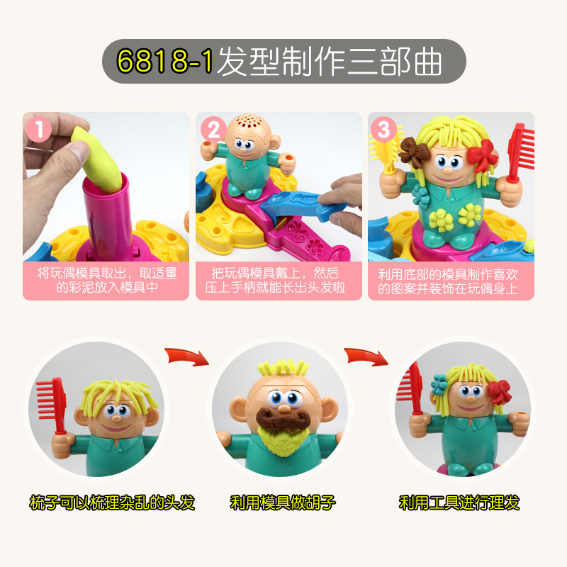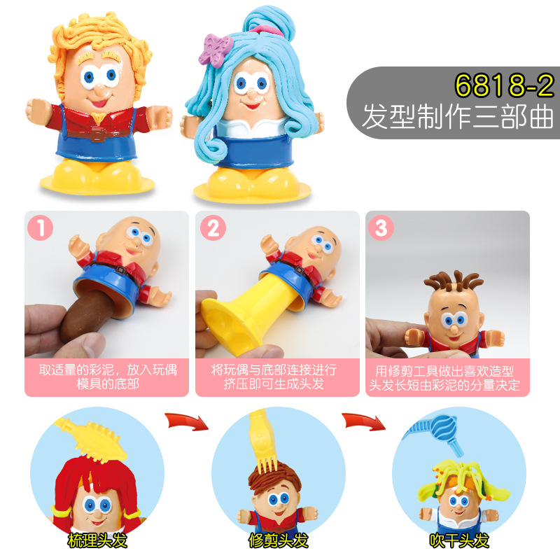 Shake-in-the-same hairdresser Colour Mud Puzzle-cutting Hair Noodles Machine Eco-friendly Rubber Clay Children Girl Toys