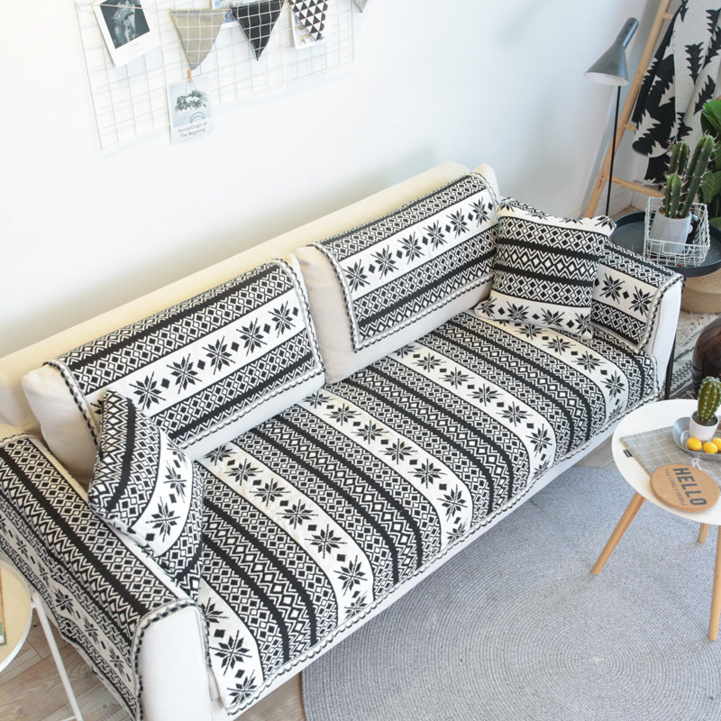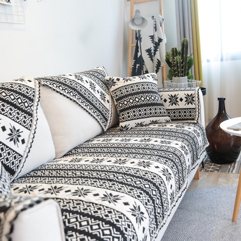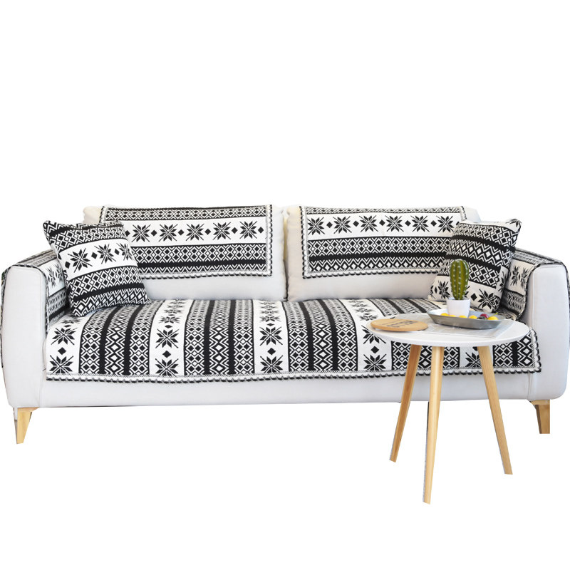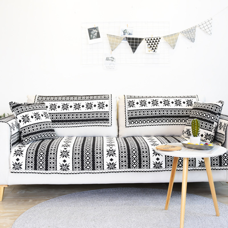 Rain Duo Summer Fresh Black & White Cotton Linen Sofa Mat fabric Double-sided Sofa Towels Cotton Thread All Season Universal Backrest Towel