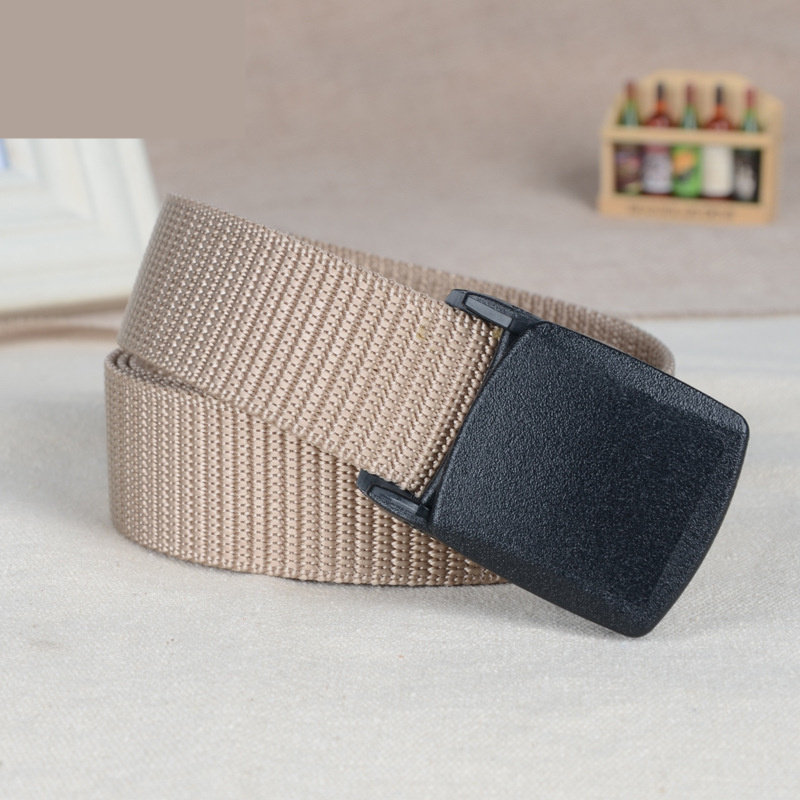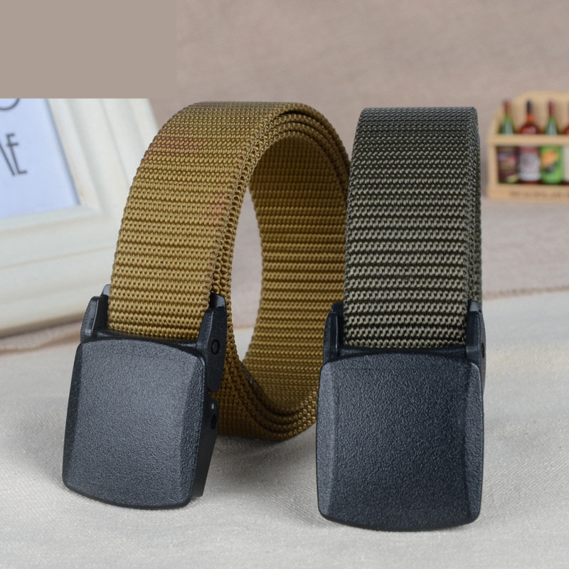Male and female outdoor plastic buckle smooth automatic buckle nylon canvas belt slim strap narrow pants with 3cm student military training