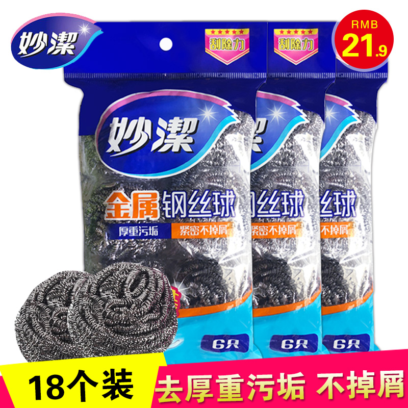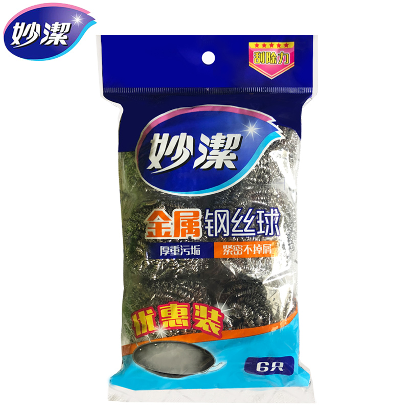 Miaojie steel wire ball cleaning ball household metal wire stainless steel coarse kitchen dishwashing brush pot does not shed chips 6pcs