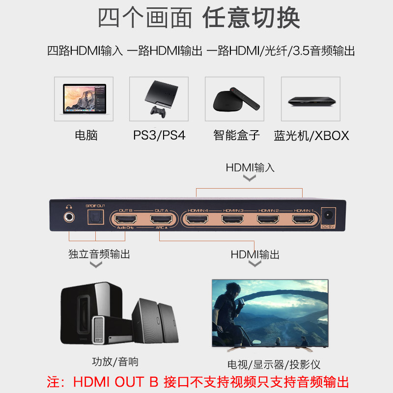 AIS Eisen 2.0a HDMI Switcher 4-in-1-out audio splitter 7.1-channel 4K@60hz Dolby Vision
