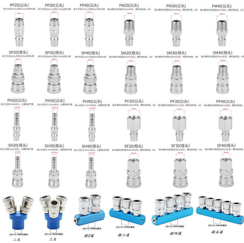 Pneumatic tool wood gun air gun tube air pump air compressor air C-type self-locking quick connector male head female head 8mm1012