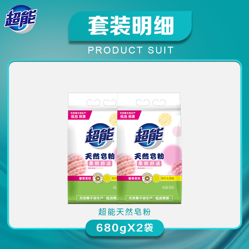 Super Natural Soap Powder Laundry Detergent (Lime & Grapefruit) Home Pack Efficient Decontamination Easy to Bleach 680g*2 Bags