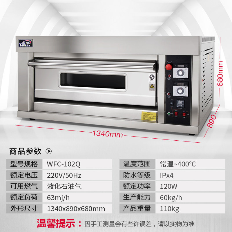 Yuehua Commercial Large Oven One Layer Two Plate Gas Baking Gas Oven Single Layer Two Plate Pizza Bread Oven