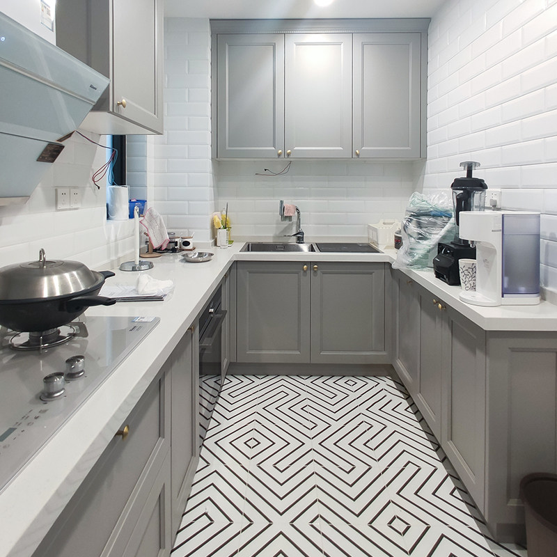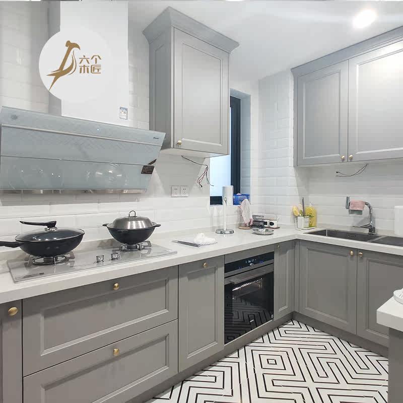Six carpenters high-grade gray monolithic cabinets customized modern simple L small apartment kitchen cabinets whole house customization
