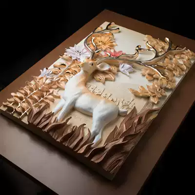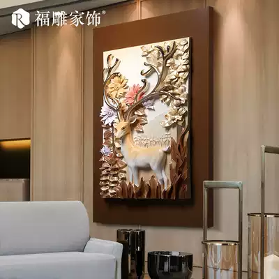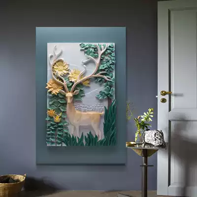 Home entrance wall decoration painting 3D three-dimensional relief modern simple vertical European-style living room background wall elk painting