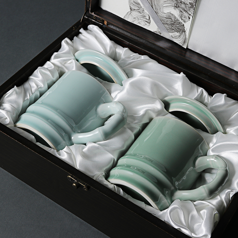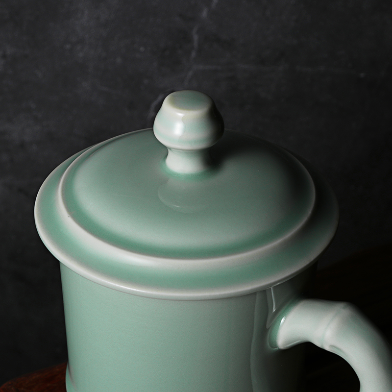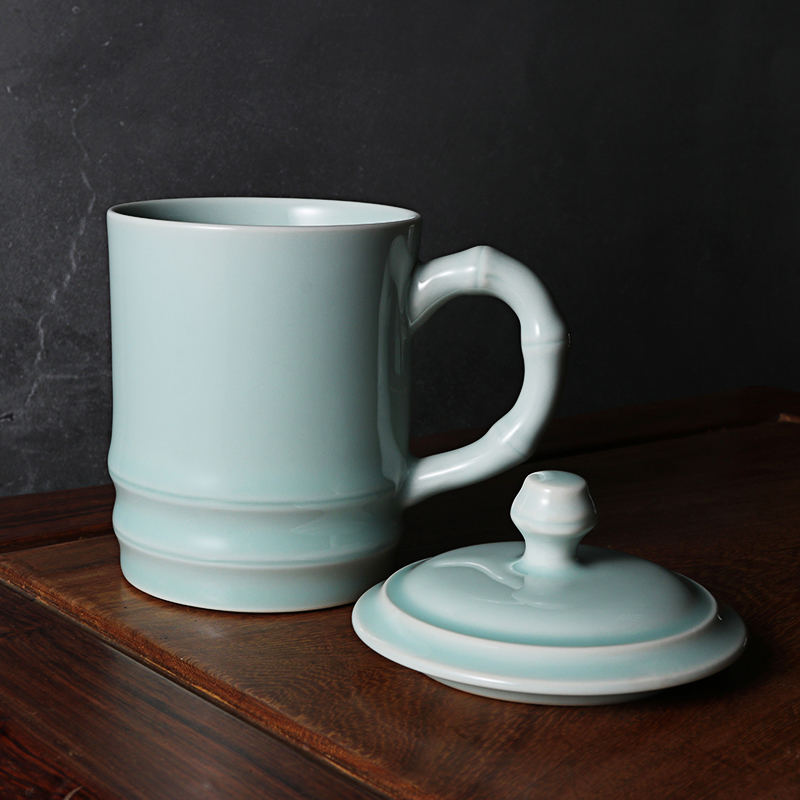 Upper Forest Lake Yue Kiln Green Porcelain New Bamboo Festival Tea Cup With Lid Water Cup Enterprise Conference Gift Cixi