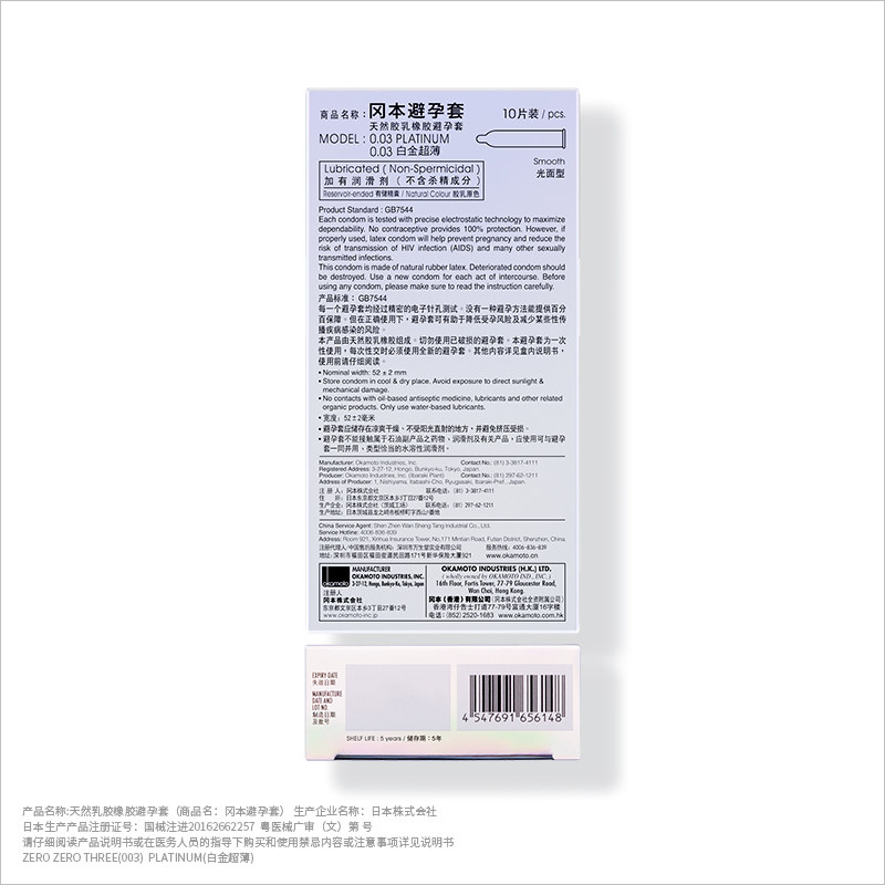 (Platinum 003) Okamoto official flagship store 003 ultra-thin condom male sex lubrication female condom