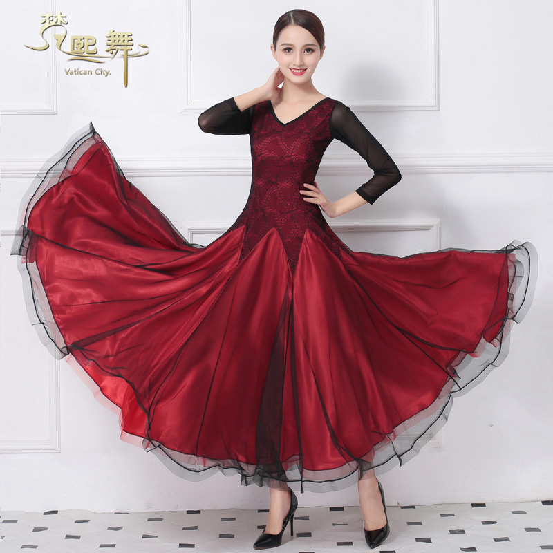 2022 new dance big swing skirt national standard dance performance clothing practice dance skirt modern dance social dance dress lace