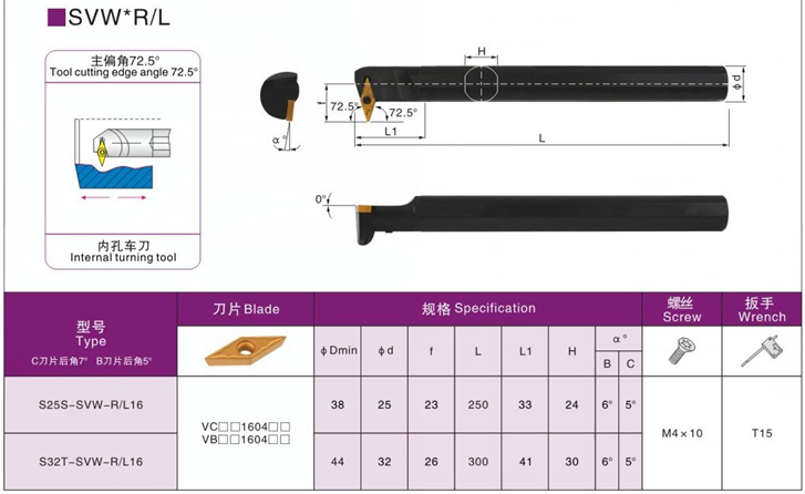 CNC knife bar 72 5 degrees inner hole sharp knife inner groove knife S16Q S20R-SVWBR11 S25S-SVWBR16
