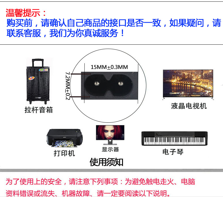 Applicable 8 - tail power cord 2 - hole original music TCL audio TV display lde tablelight charger