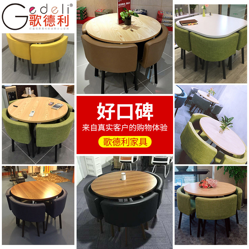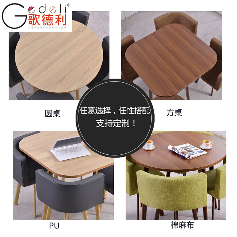 Light walnut square table Coffee leather chair one table four chairs] Water curve round table Coffee leather chair one table four chairs] Dark walnut round table Black leather chair one table four chairs] Dark walnut square table black