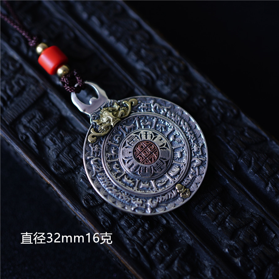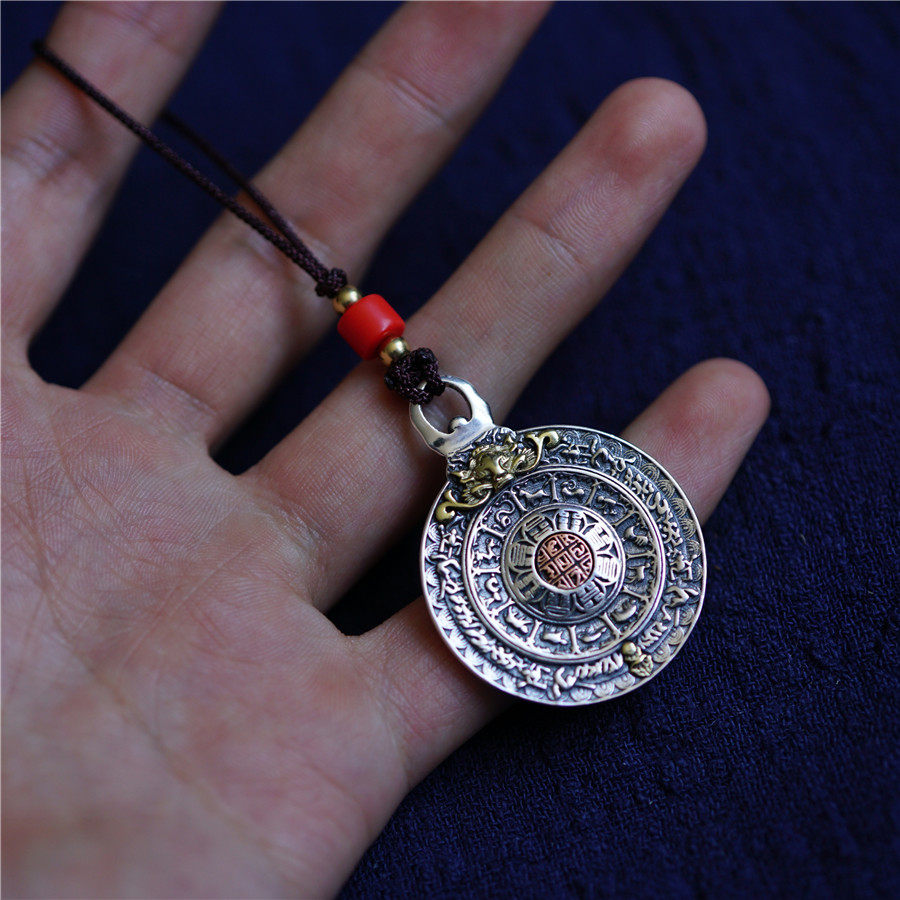 925 Pure Silver Jiugong Gossip Signs of Classic Nine Palace Gossip Cards Pendant and Waist Cards Bag Hanging Pendant
