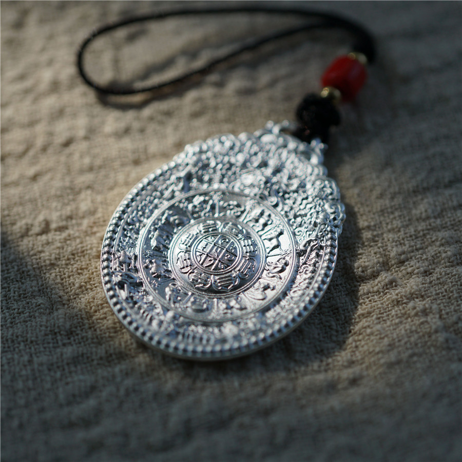 Clear human head model 33 gr 925 pure silver big Ming Yongle Nine Palace Gossip Cards Diamond Pestle Casket Hang Pendant