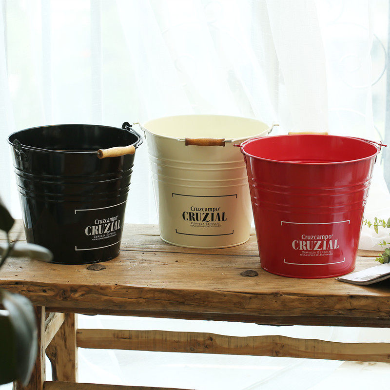 Iron bucket tin large flower bucket pastoral waterproof portable bucket decorative bucket potted flower bucket flower pot storage flower pot storage Florist flower shop