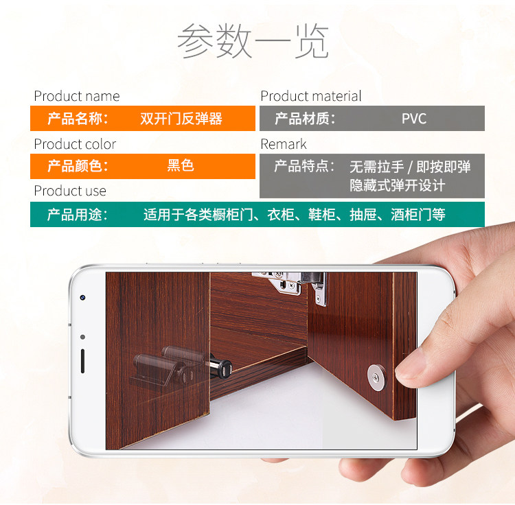 Double-headed door rebound magnetic touch suction cabinet door magnetic suction wardrobe overall cabinet invisible door bumper bead door suction press rebound device