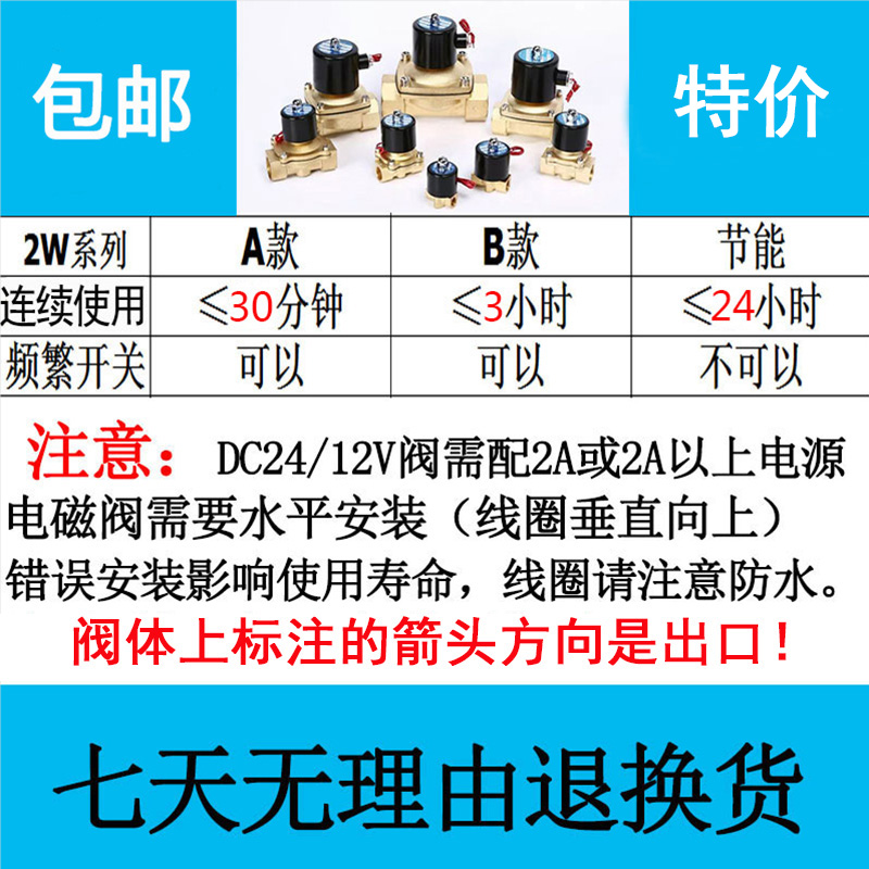 Normally closed solenoid valve water valve AC220V control valve DC24V electric valve 12V switch valve 4 points 6 points 2 inch copper coil