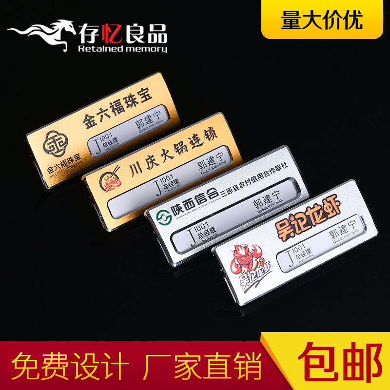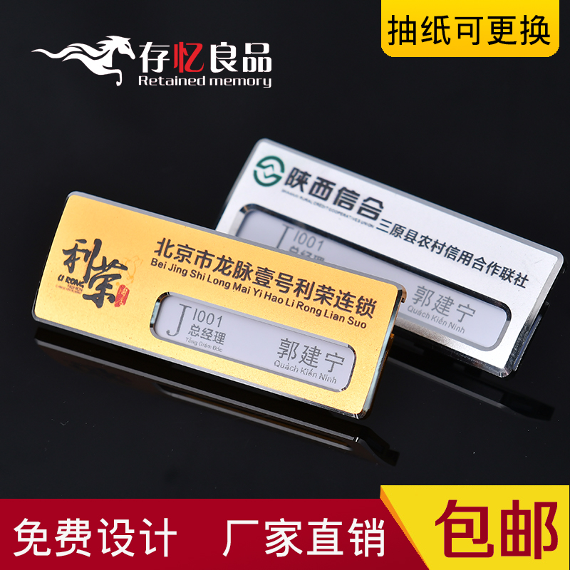 Chest card set to be replaceable aluminium alloy hotel worker number plate working nameplate Nameplate Metal Workcard Customised