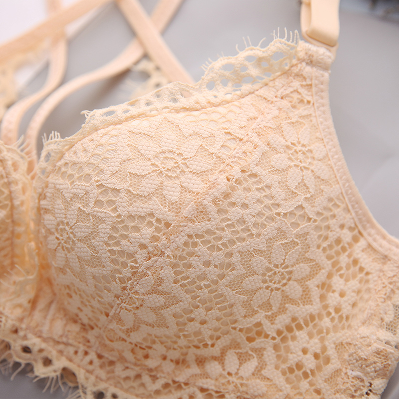 Beautiful back bra gathered without steel ring sexy breast adjustable lace bra small chest top front buckle underwear woman