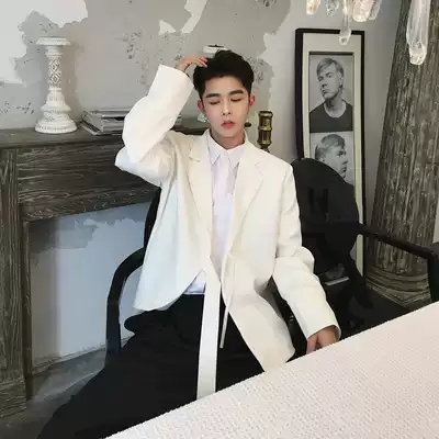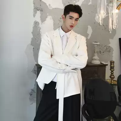 Korean personality Harajuku hair stylist suit men black and white simple design chiffon lace asymmetric white suit