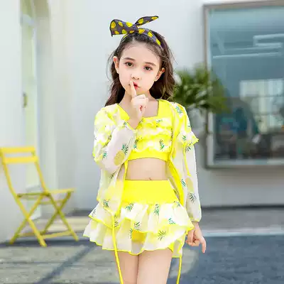 Girls ' swimsuit two-piece cute children's sunscreen boxer swimsuit Middle and large children's baby Korean princess skirt swimsuit
