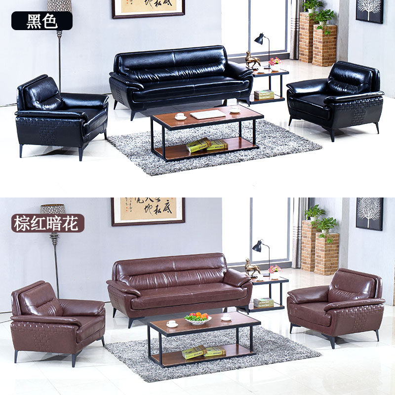 Office sofa coffee table combination modern minimalist three-person business reception room reception area leather office sofa