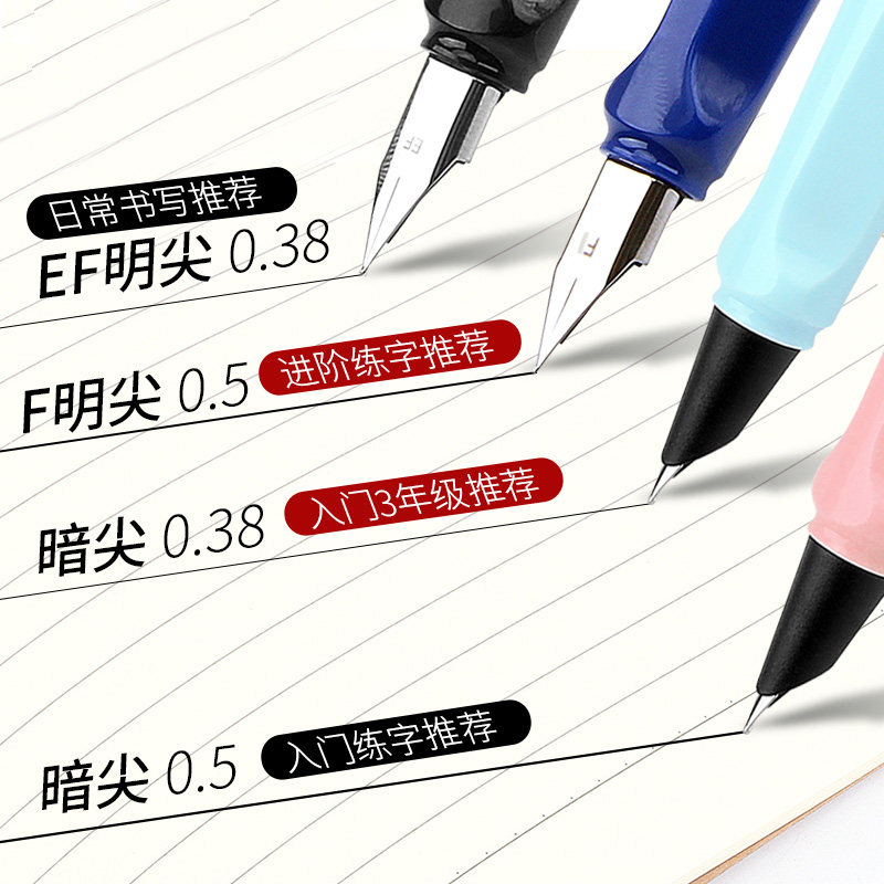 The dark tip is suitable for beginners, the bright tip is suitable for advanced use, 0.5 for practicing words, and 0.38 for writing homework