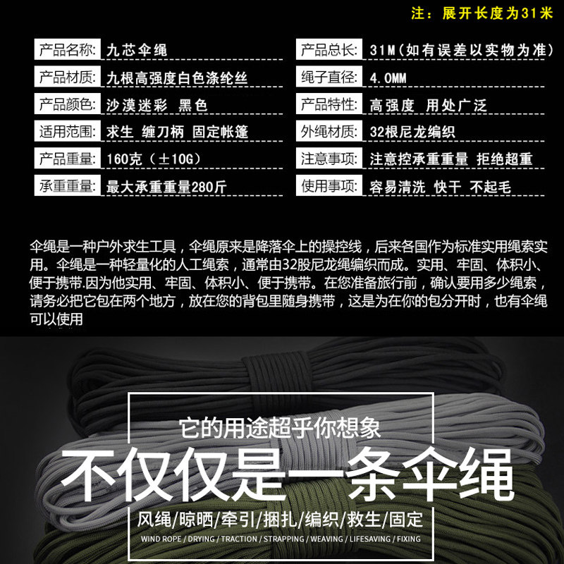 Black umbrella rope 31 meters Camouflage umbrella rope 31 meters