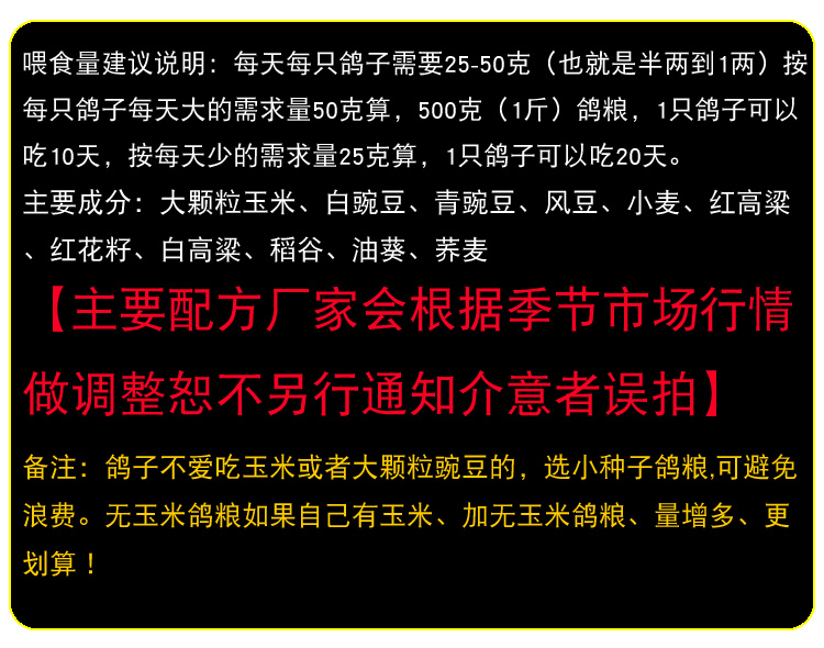 5 catties equipped with corn base dove mix of nutritional feed turtledove Geon Watching Pigeon Meat Dove