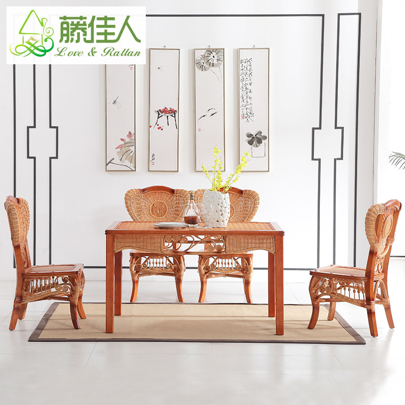 Rattan beauty rattan table dining chair a table four chairs combination of solid wood dining table and chair rectangular table rattan table HT