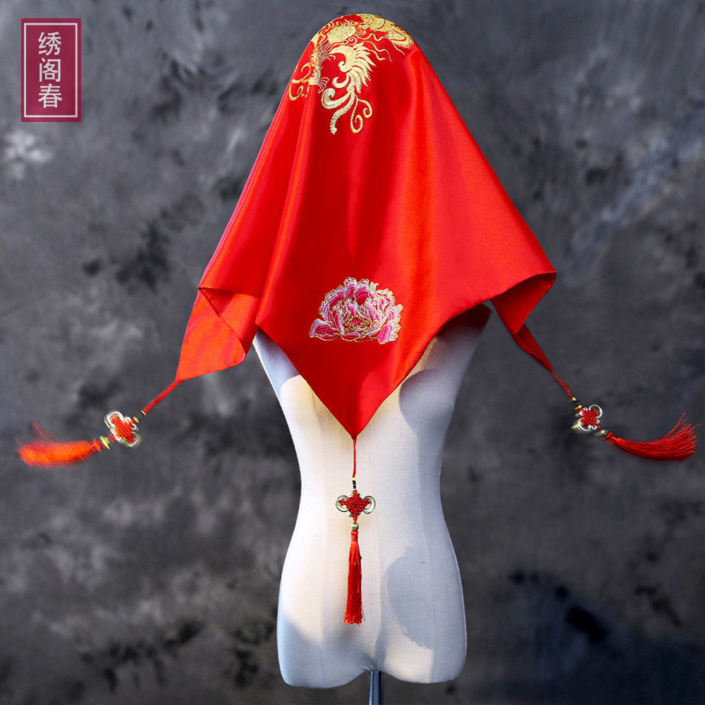 Red hijab Bride Chinese embroidery Wedding veil wedding phoenix hijab wedding supplies red turban