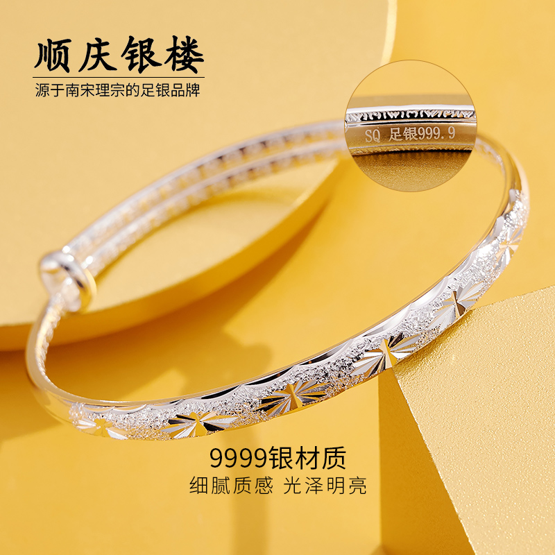 9999 pure silver full Star round belly silver bracelet personality foot silver solid bracelet young Niche Trinket Girlfriend Gift