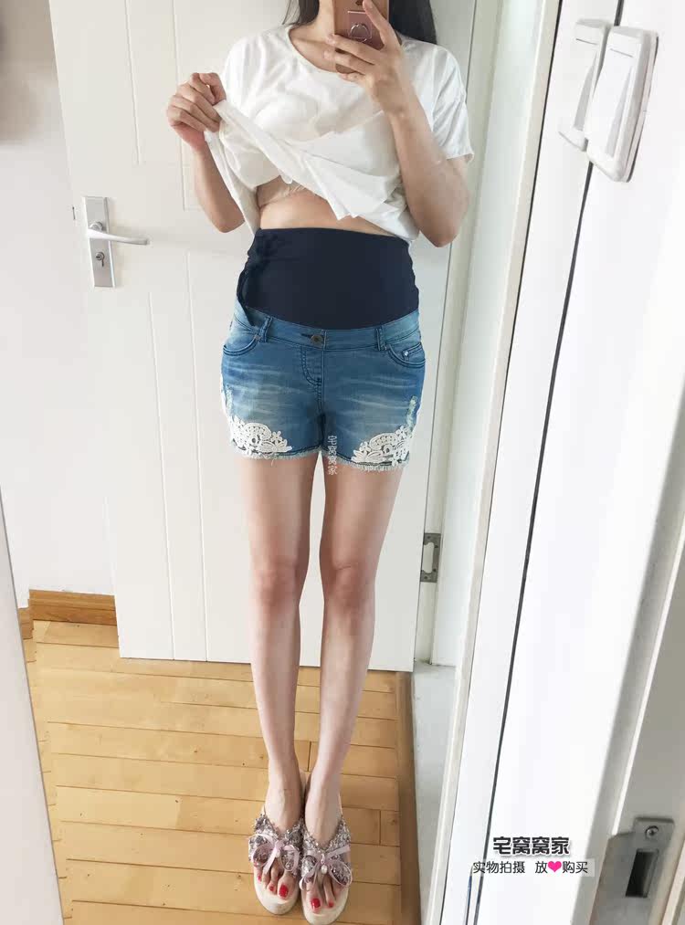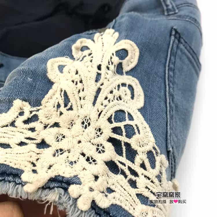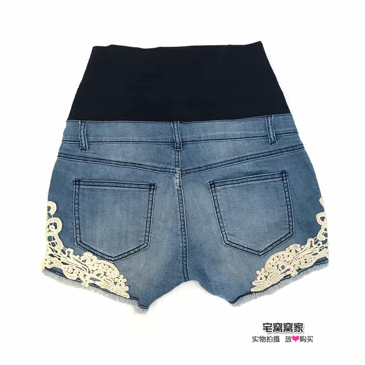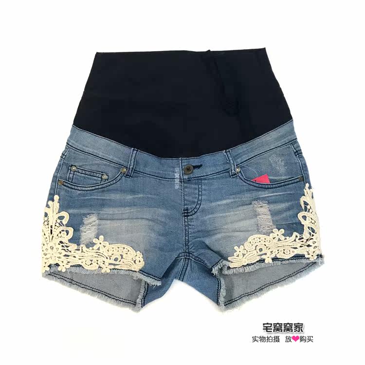 (Pure Cotton Denim) Taiwan Order Fashion Pregnant Women Denim Shorts Pure Cotton Maternity Universal Denim Lace Hot Pants