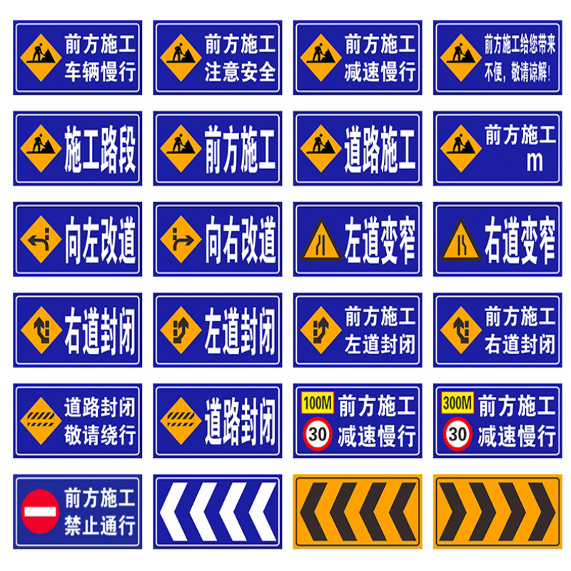 Vehicle Slow Moving Vehicle Bypass Traffic Prohibition Pass Right Pointing To The Right Lane Narrowing Left Lane Narrowing Right Lane Closure Left Lane Closure Attention Safety Shelf Shelf Plus Sheet Iron Sheet Iron Sheet Wonderful Glistening