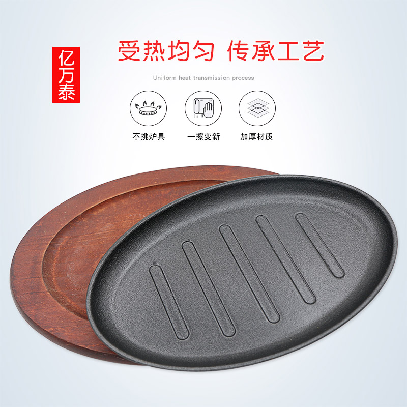 Special Force Thickened Denier Iron Plate Burning Pan Han Style Grilled Meat Fried Steak Pan Nonstick Cast Iron Striped Bull Pickpocketing home Commercial use