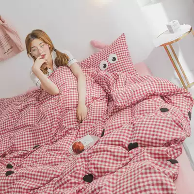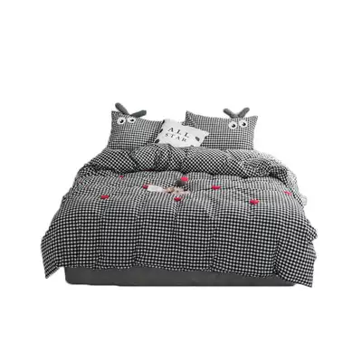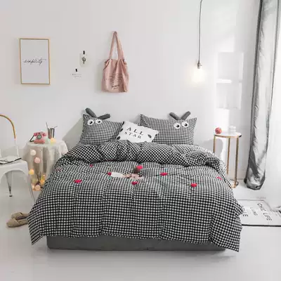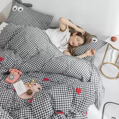 ins girl heart plaid cotton four-piece washing cotton princess style bedding black and white grid quilt cover