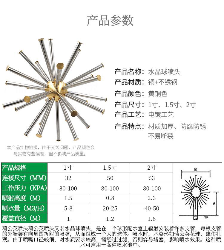 1 inch (DN25) crystal ball nozzle 1 5 inch (DN40) water crystal ball nozzle 2 inch (DN50) crystal ball nozzle