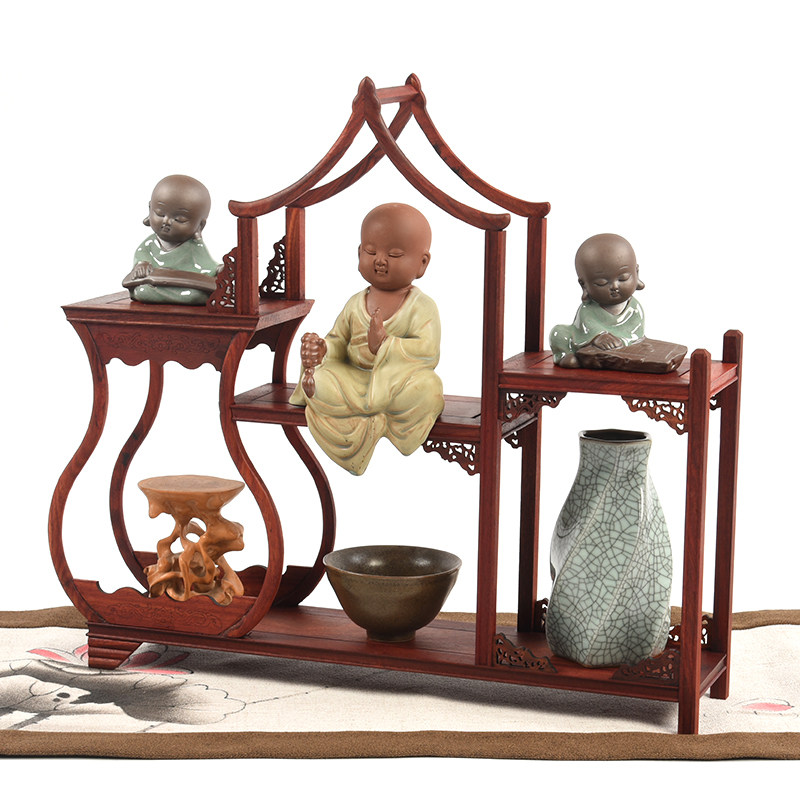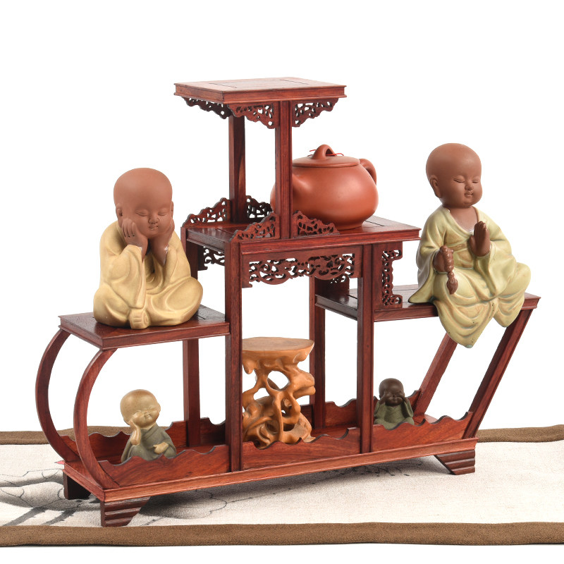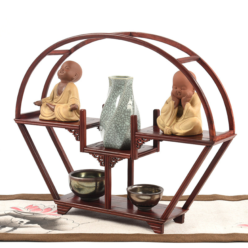 Red Wood Small Bou Ancient Shelf Solid Wood Table shelf Purple Sand Pot Tea Set Multi Treasure Cabinet Antique Seal Swing multi-meat