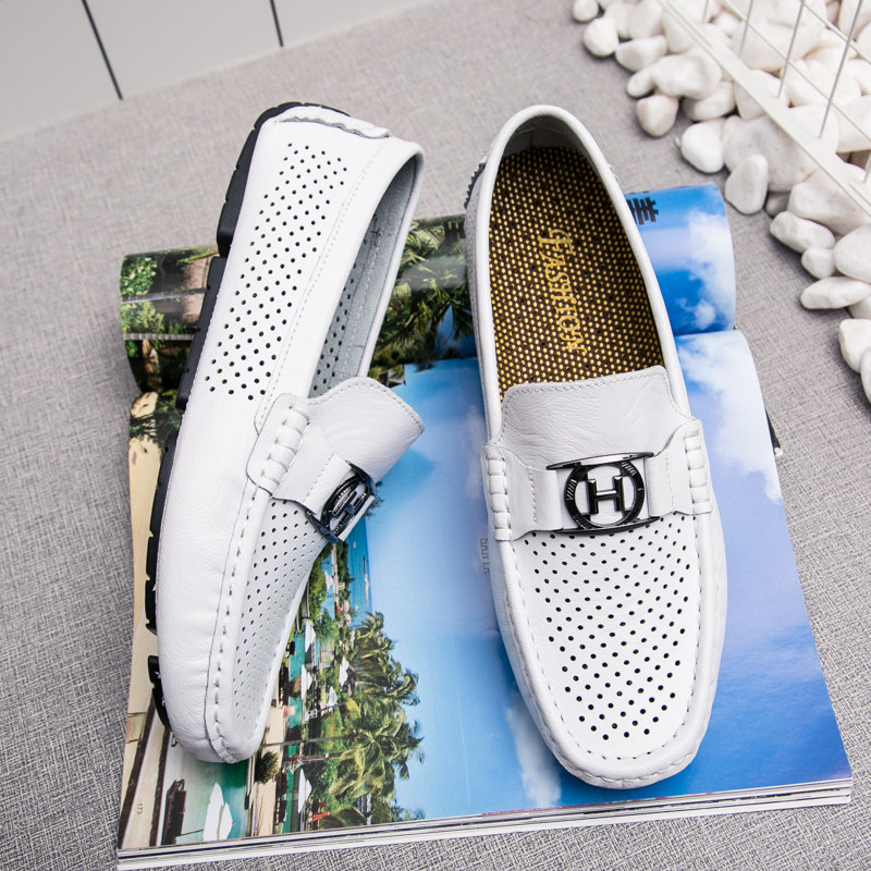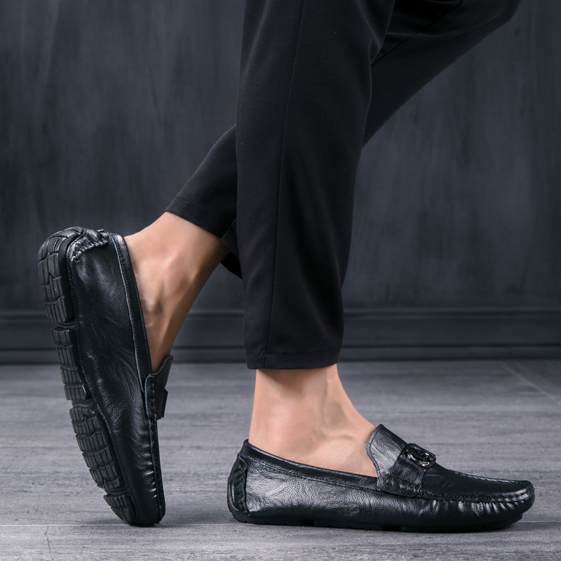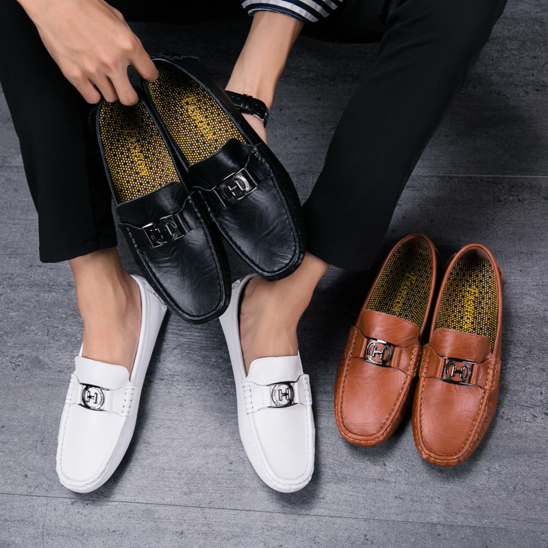 Bean Bean Shoes Men's Shoes Han Prints 100 hitch Personality Trends Sloth Shoes Genuine Leather Shoes Summer Soft Bottom Casual Tide Shoes Fashion