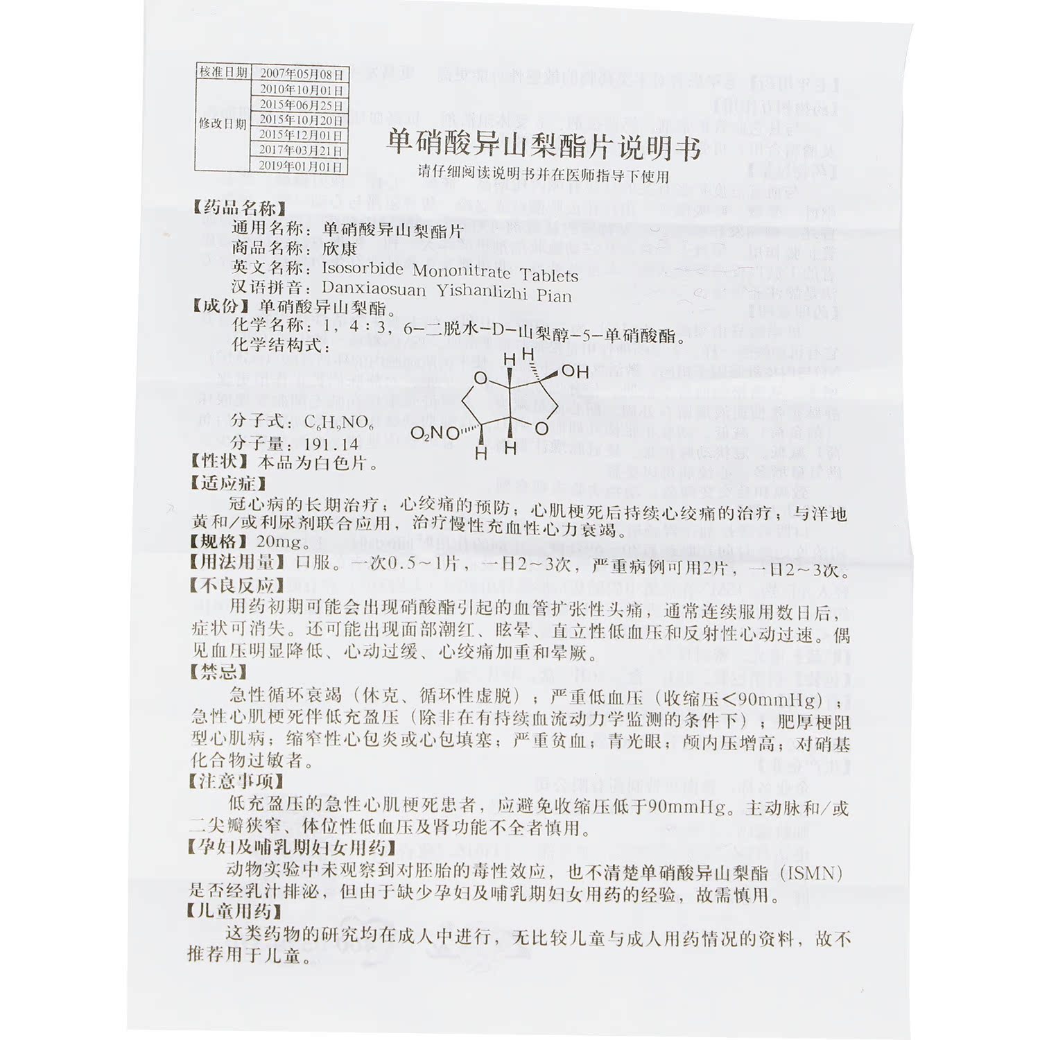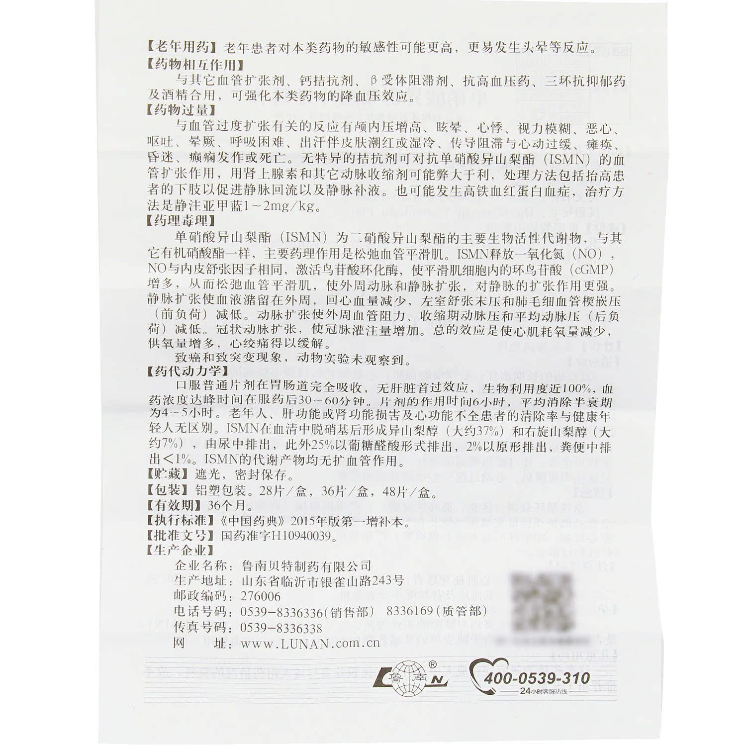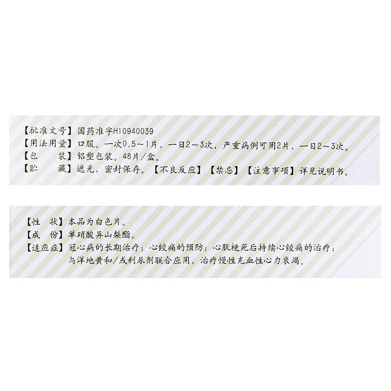 Low to 41 boxes) Lunanhinconn mononitrate isosorbide tablets 20mg * 48 tablets Coronary Heart Disease Angina Myocardial Infarction heart Failure Single nitric acid Isoyama Mononitric Acid Isosorbide