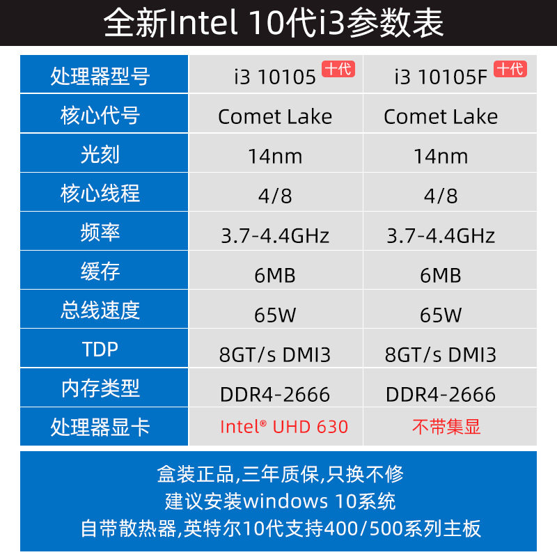 IntelIntel Core i3 10100f 10100 10105 10105f boxed computer CPU processor