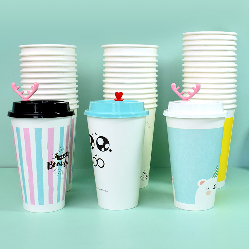 Thickened disposable cupcake milk tea coffee cup soy milk cup hot drinking cup with lid straw 16 oz 500ml