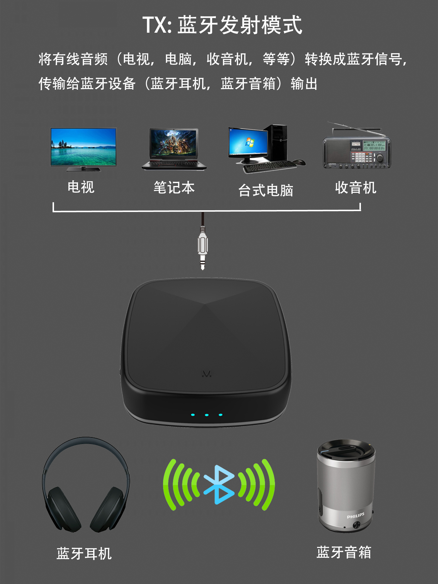 CSR86704 2 Bluetooth receiver audio transmitter two-in-one computer TV sound box louder wireless headphones
