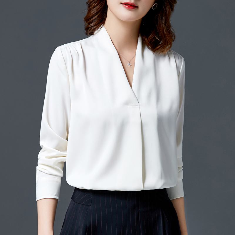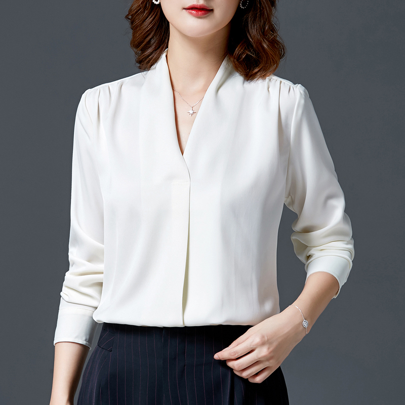 Phoenix Color V Collar Shirt Woman Long Sleeve 2022 Spring Dress New Work Clothes Workwear Lady White Shirt Tooling